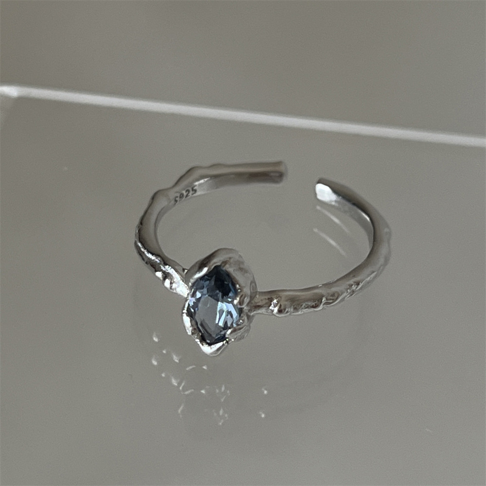 Light Luxury Cold Tone Index Ring, Natural Colorful Gem & Zircon Design, Fashion Adjustable Couple Rings